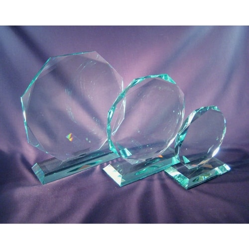 The Octagon Optical Glass Award is made from 12mm thick optical glass and stands on a beveled glass base.