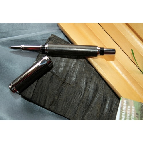 Chrome Plated Roller Ball Bog Oak Pen