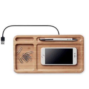 Go hands free with this wireless charger storage box with bamboo top, USB hub and smartphone stand/holder. USB output DC5V/1A. Wireless output: DC5V/1A. It is compatible with the latest android phones, iPhone 8, X and newer models. It includes a type-C cable. As Bamboo is a natural product, there may be slight variations in colour and size per item.